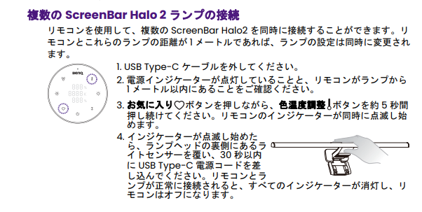複数の ScreenBar Halo 2 ランプの接続