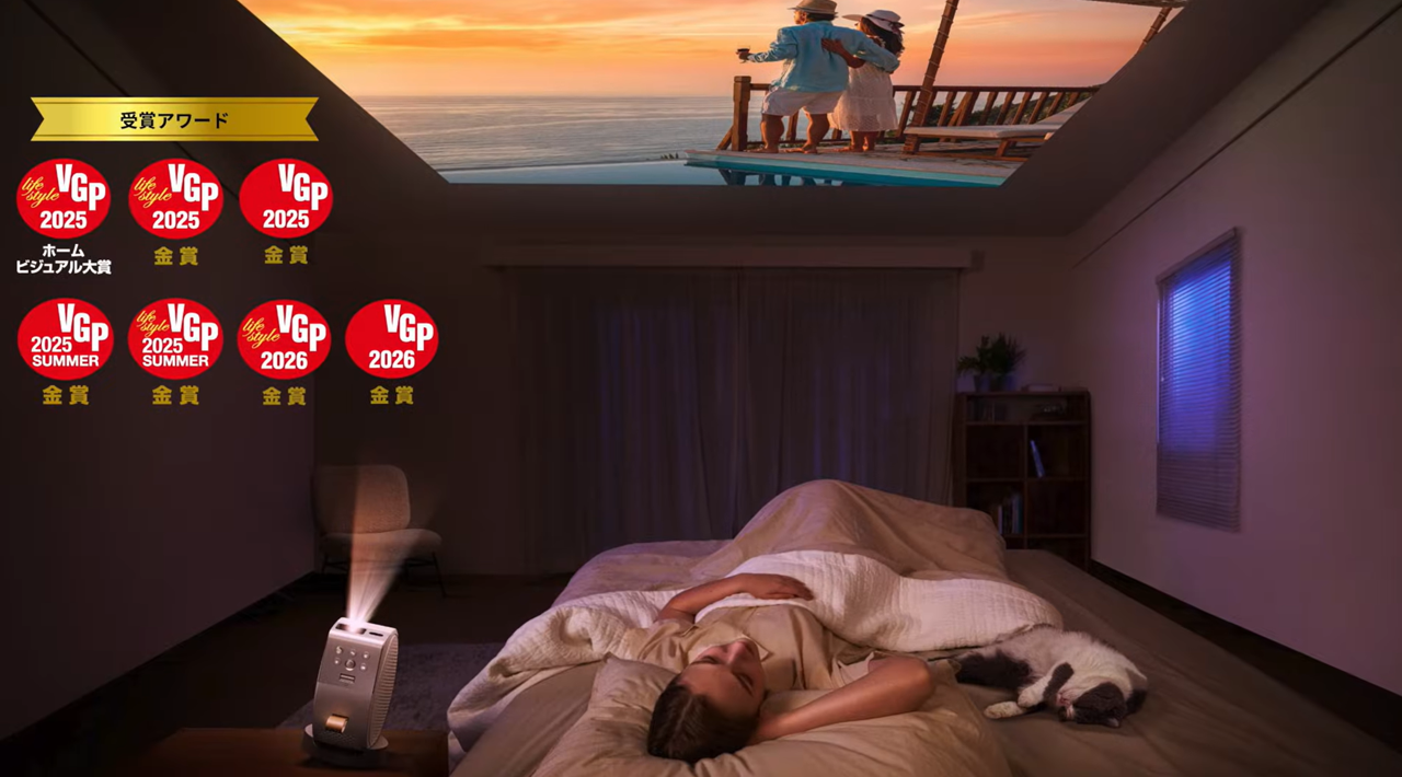 設置のハードルが驚くほど低いため、「使いたい時にサッと出して天井を映画館に変える」という使い方が実現します。お子様との寝かしつけタイムを楽しくしたい方、仕事終わりの自分へのご褒美として寝ながら映画を観たい方に、自信を持っておすすめできる天井プロジェクターです。