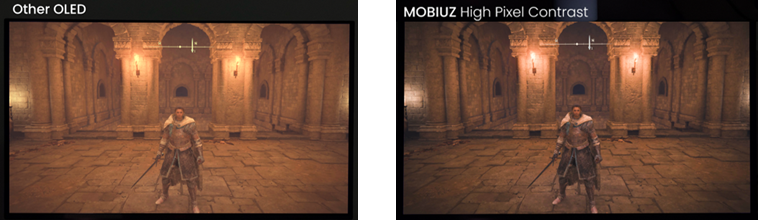「High Pixelコントラスト調整」技術は、明暗のコントラストをピクセル単位で最適化し、映像に深い奥行きと立体感をもたらします。暗闇の洞窟や陽光が差し込む遺跡、夕暮れの街並みといった多様なシーンでも、暗いシーンではこれまで見えにくかったディテールを自然に引き出しつつ、明るいシーンでは白飛びを抑えて鮮明に描写。光と影のバランスに優れた映像表現により、より深い奥行きとより高い没入感ある映像体験を可能にします。
