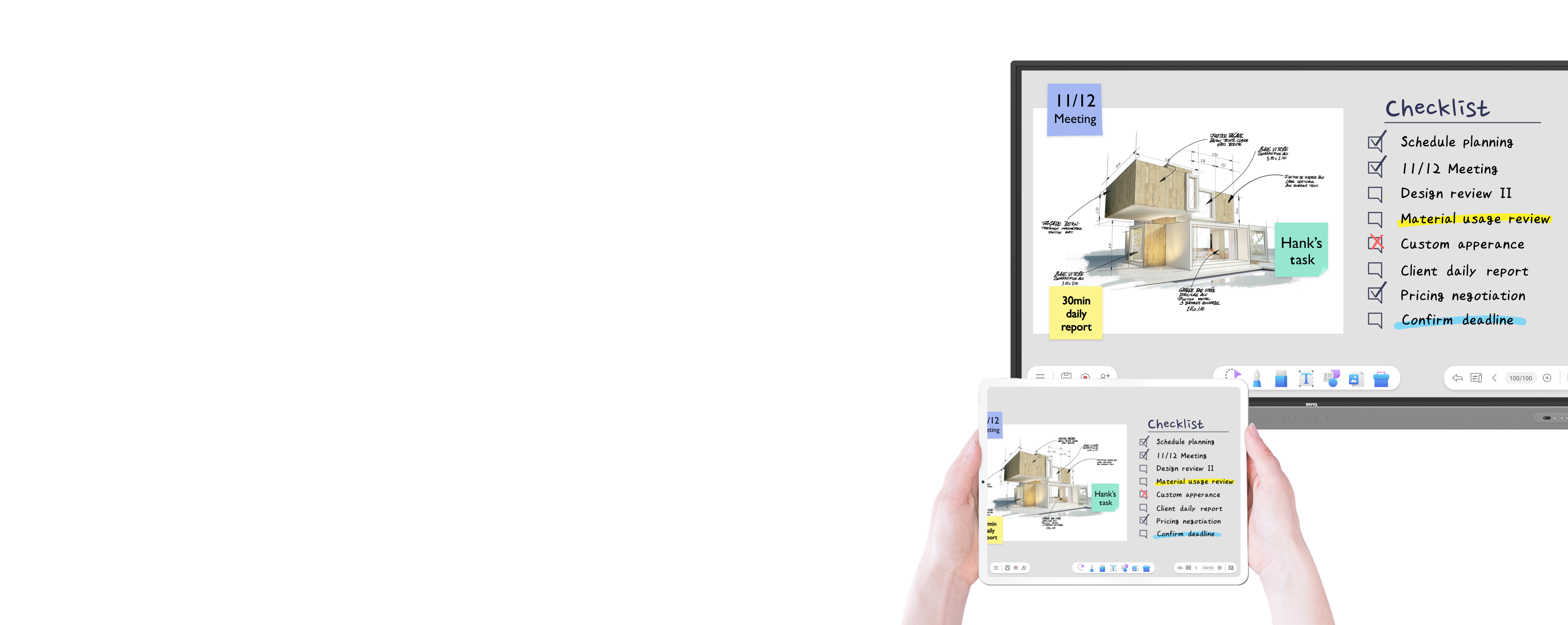 플랫폼 간 지원을 통해 모든 참가자는 장치의 운영 체제에 관계없이 화이트보드 세션을 로드하고 검토할 수 있습니다. 회의 후 참가자는 작업을 저장하고 향후에 토론을 이어 계속할 수 있습니다.