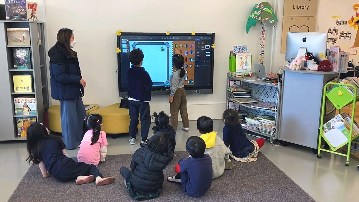 이전에는 아이들이 유치원에서 지급한 태블릿으로 이러한 활동을 수행했는데, 이는 개별 학습에는 효과적이지만 많은 학생들의 참여를 이끌어내지 못했습니다. 교직원들은 학생들이 대형 공유 화면에서 호스팅 활동을 수행할 수 있는 에듀테크 솔루션을 찾고 있었습니다.