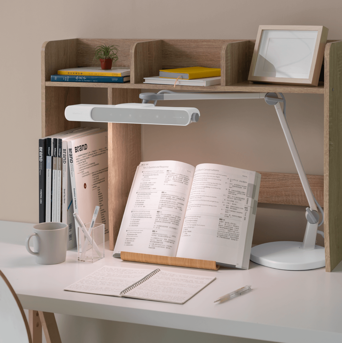 충분하고 넓으며 균형 잡힌 조도로 아이들이 책을 읽는 데 필요한 빛을 제공합니다. 램프 바로 아래(높이 40cm)에 5700K 백색광으로 1000룩스 조명이 있어 집중력이 향상됩니다.