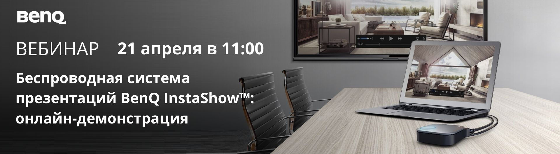 Беспроводная презентационная система BenQ InstaShow™ минимизирует время запуска презентации и обеспечивает защиту корпоративной информации.