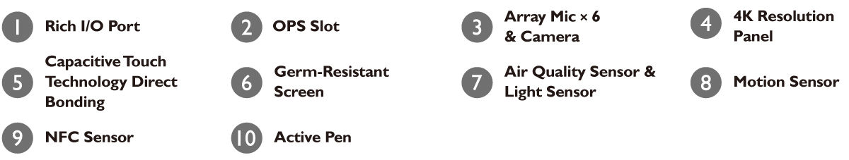 DuoBoard ช่วยให้ผู้ใช้สามารถนําอุปกรณ์พกพาของตนเองมาใช้เพื่อเริ่มการประชุมได้ทันที กล้องในตัวและไมโครโฟนอาร์เรย์ยังช่วยให้การประชุมทางไกลผ่านวิดีโอได้โดยตรงไม่มีปัญหาในการจัดเตรียมและสายเคเบิลยุ่งเหยิง ๆ DuoBoard จึงมีความเข้ากันได้ที่ดีเยียม โดยรองรับแหล่งรับสัญญาณต่าง ๆ รวมถึง OPS, HDMI, VGA, แฟลชไดรฟ์ USB และอื่น ๆ