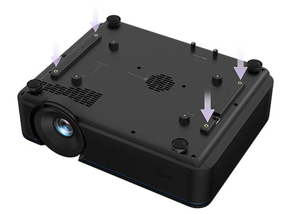 Có một chi tiết nhỏ nhưng hữu ích, phần dưới của máy chiếu được đánh dấu bằng trọng tâm để việc lắp đặt trở nên dễ dàng hơn.