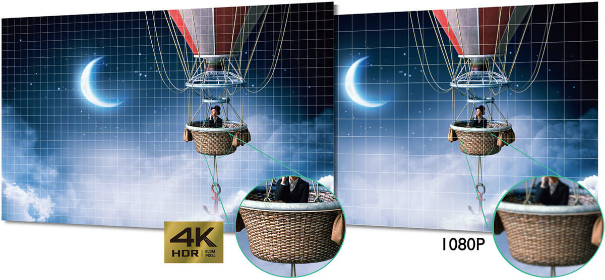 Để đảm bảo chất lượng hình ảnh tốt nhất, BenQ LK953ST sử dụng Công nghệ tăng cường hình ảnh 4K tiên tiến để tăng cường hơn nữa chất lượng hình ảnh chiếu. LK953ST tự động đẩy độ phân giải của tất cả hình ảnh được chiếu lên 4K, đảm bảo chi tiết hình ảnh tuyệt vời. Đồng thời, LK953ST cũng có Pixel Enhancer (Tăng cường Điểm ảnh) 4K, là một tính năng nâng cao khả năng thích ứng chuyển động, phát hiện các thay đổi về màu sắc giữa một đối tượng và cảnh nền để tạo ra các cạnh sắc nét và vân bề mặt chính xác.