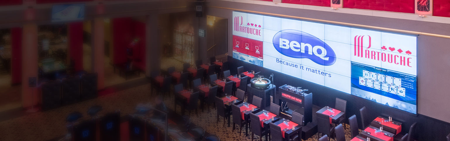Partouche 賭場想要引入數位電子看板解決方案藉以提升賭場氛圍,並吸引餐廳顧客前往。 初步計畫需要一面大型的拼接電視牆,因為 Patouche 賭場瞭解高解析度的巨幅影像能夠立即吸引人們的注意力。
