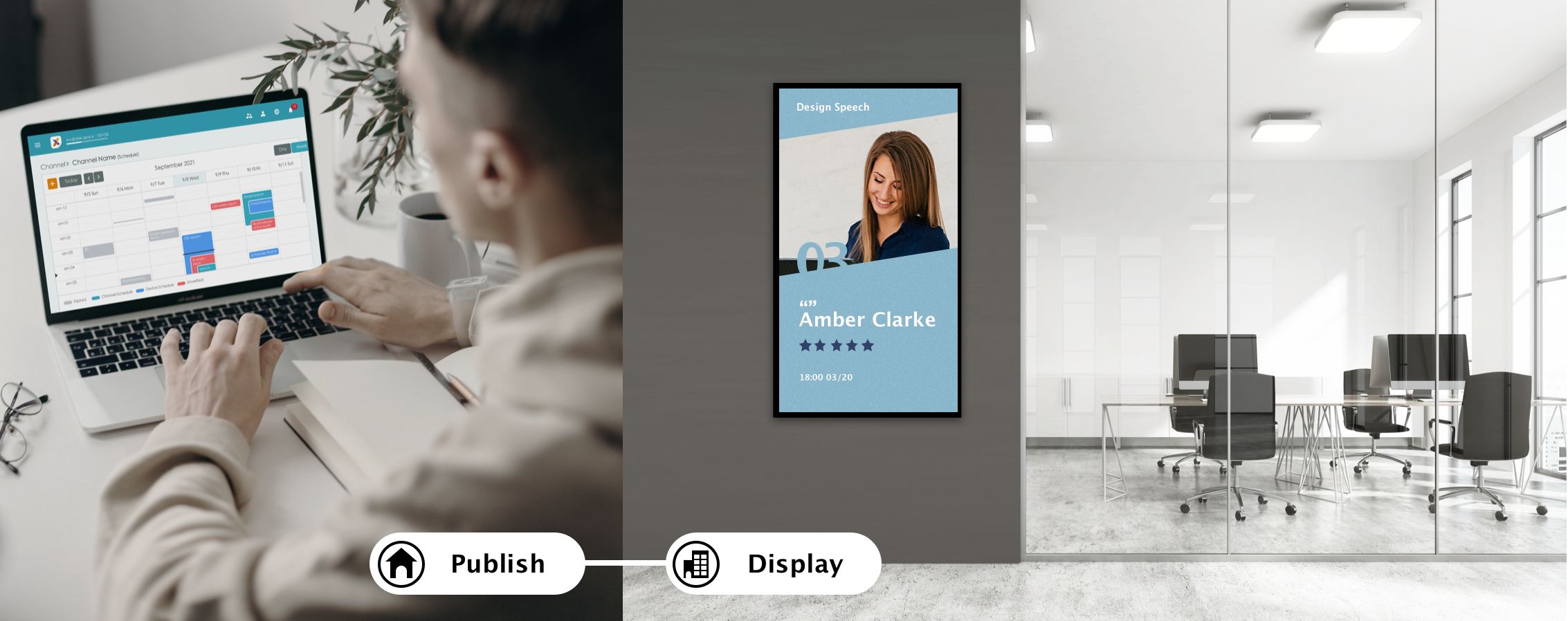 X-Sign 使用單一解決方案創建、安排和發佈內容。