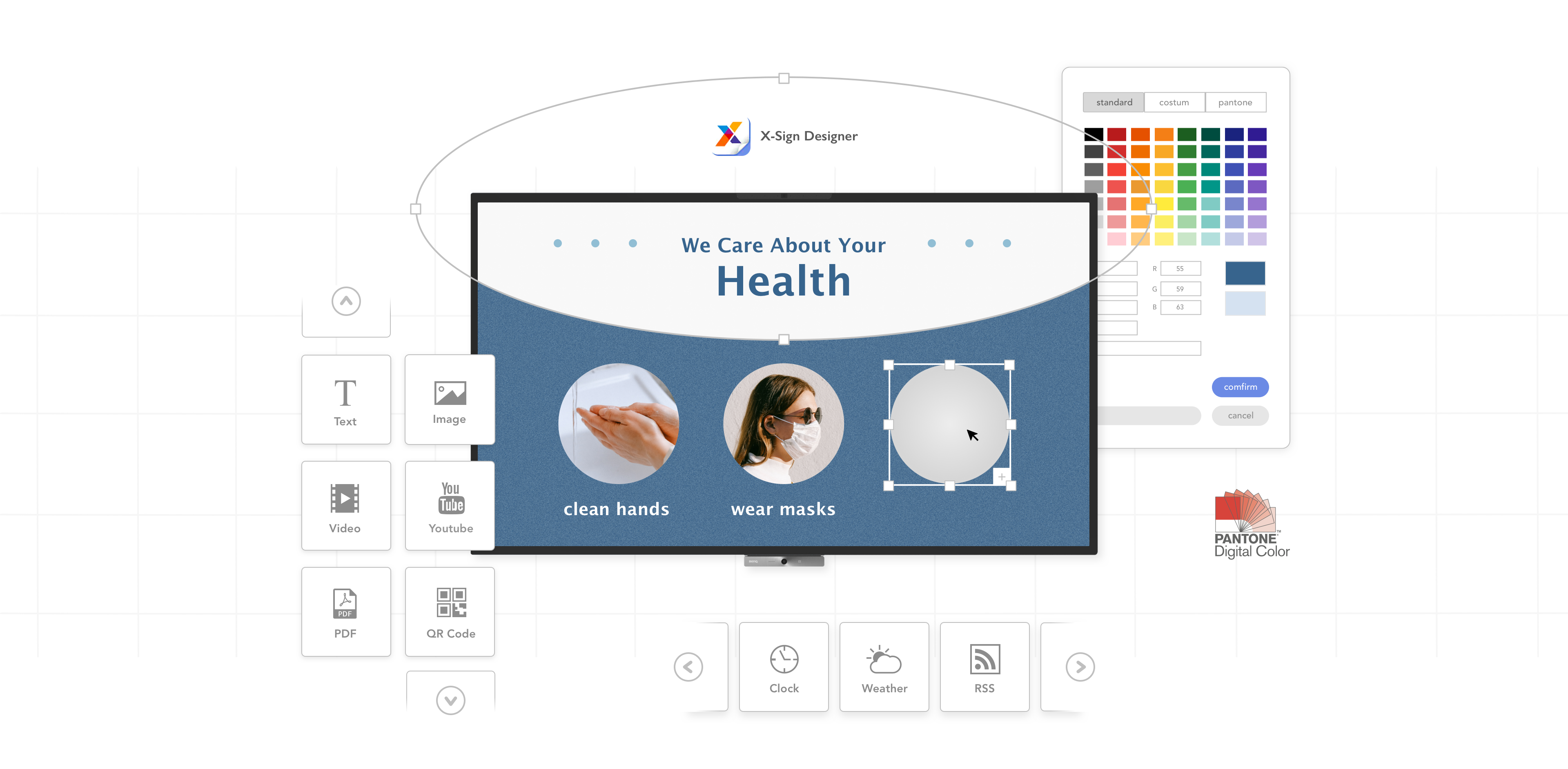 X-Sign 允許您將顯示器轉變為可用於發佈公告或建立品牌標識的視聽廣告牌,從而充分利用您的顯示器。