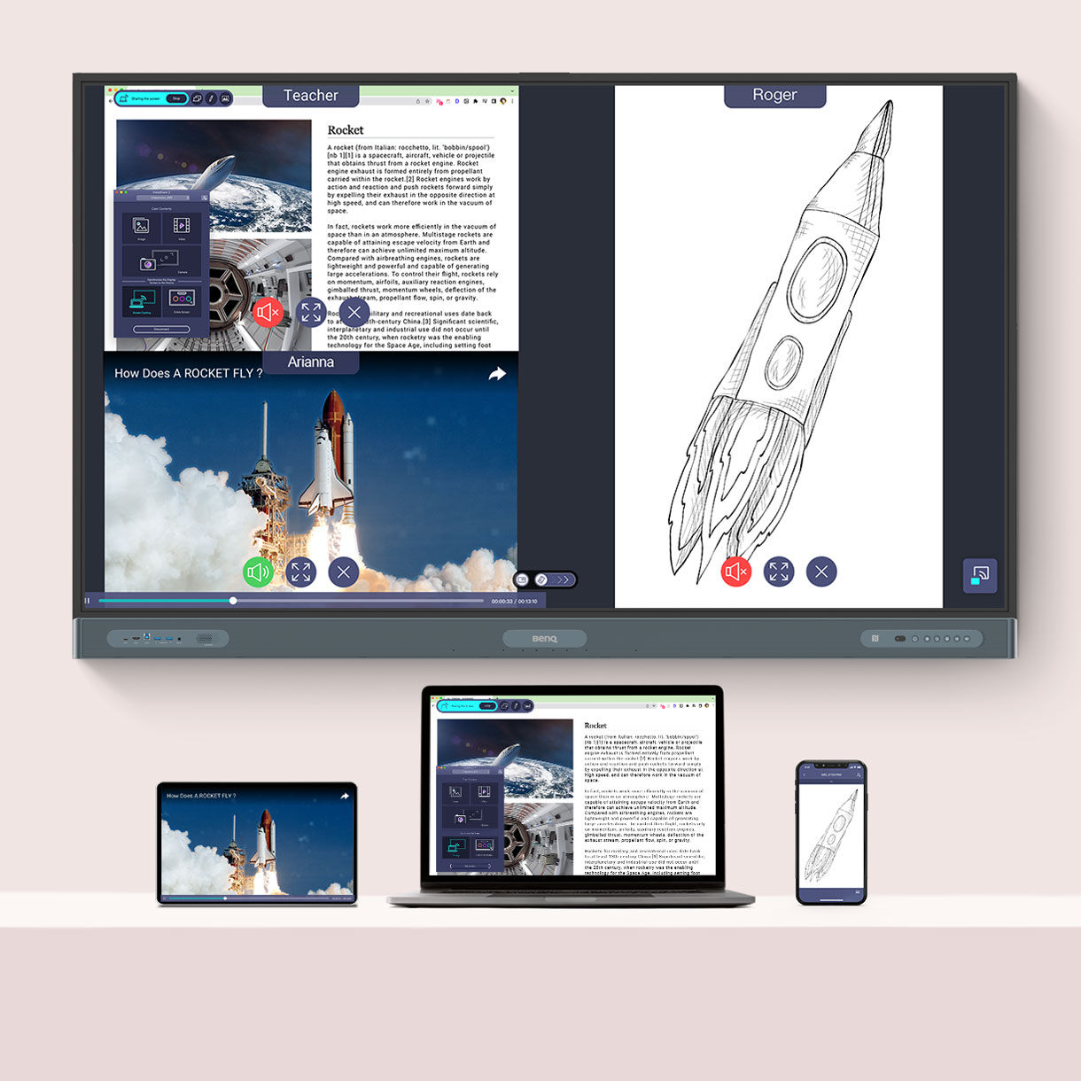 將 BenQ Board 螢幕投射到連接的裝置上