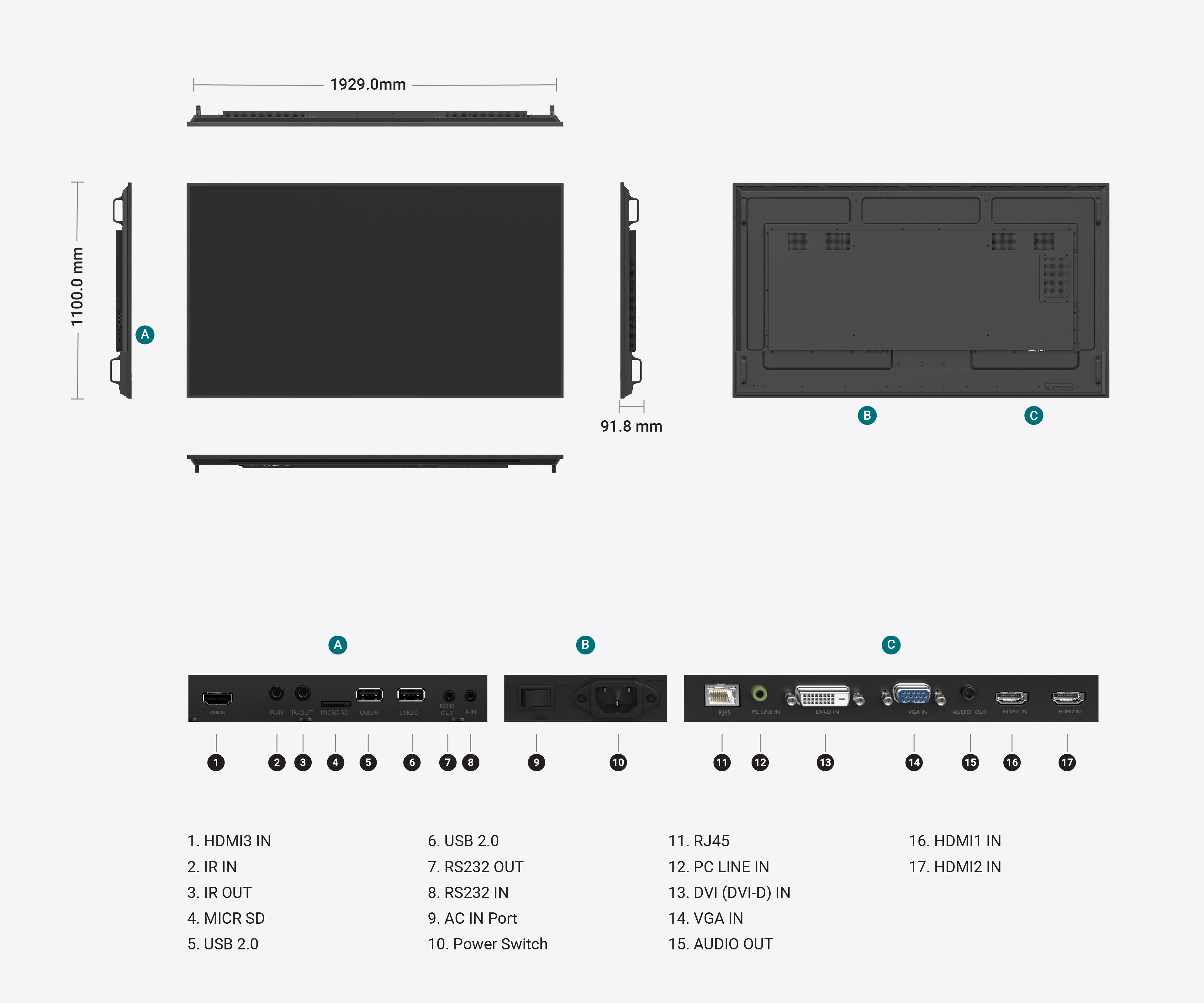 1929.0 × 1100.0 × 79.4 mm (75.9 × 43.3 × 3.1 inch)