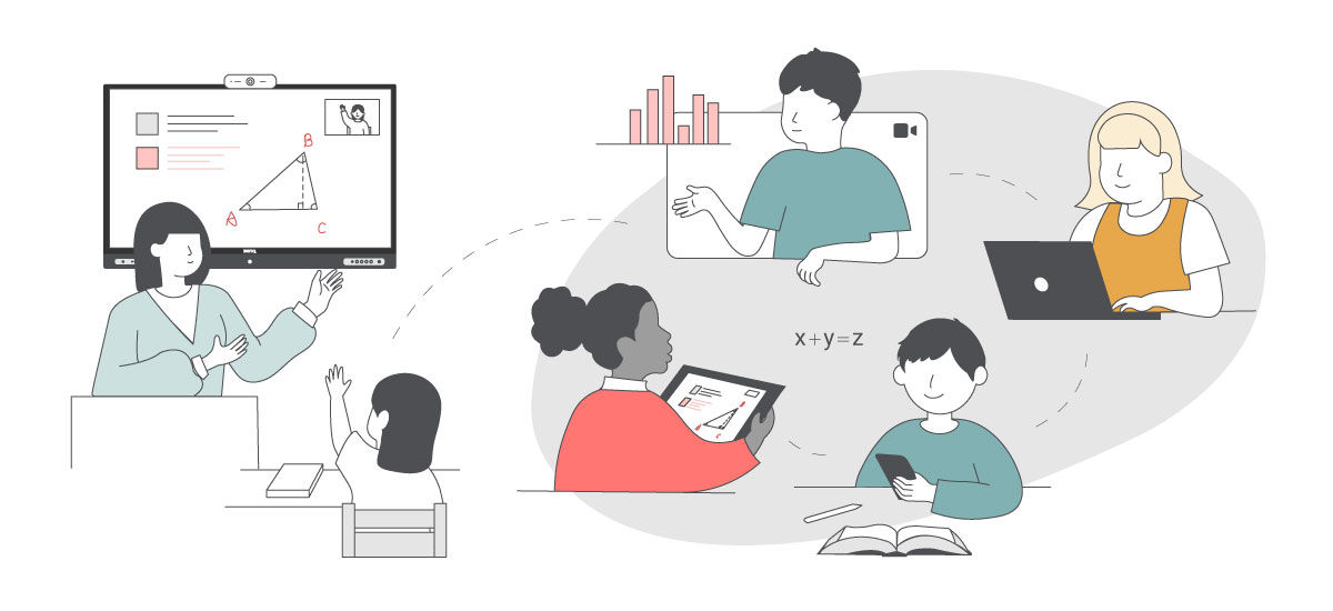 學校實際課堂教學時,老師除可透過大屏進行簡報、電子白板協作,學生也可將老師上課教學時提出問題或訓練的答案寫在平板上,透過教室內互動觸控顯示器,和老師、同學分享,如此既可訓練學生表達力,也能提升學生參與感。