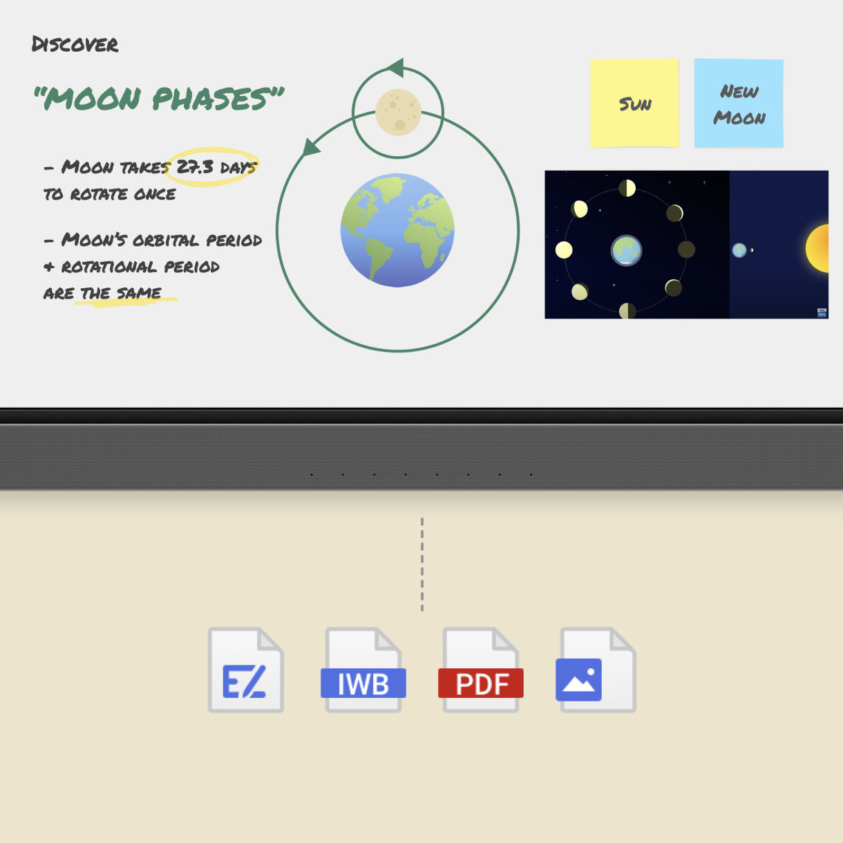 用您習慣的教學方式來使用 EZWrite。您可以將 Microsoft Office 和 PDF 檔案匯入您的工作階段,然後以各種格式儲存課程。