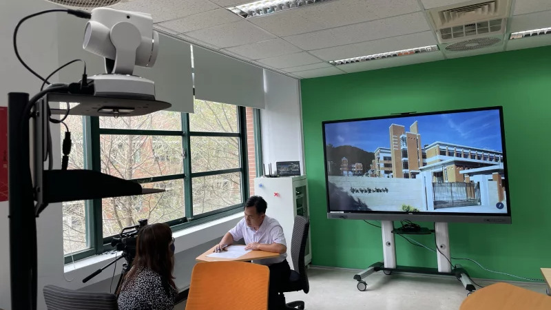 透過 4K 高畫質的大型互動觸控式顯示器與完備的網絡建置,再加上錄播系統的串接,麗山高中的『雲端智慧教室』實現了更即時、生動的遠端交流,細膩真實的畫質與清晰的喇叭音效,讓遠在海外的視訊對象如臨眼前。以科技打破距離與疫情的限制,優化的『數位交流』創造與『實體交流』並駕齊驅的成效。