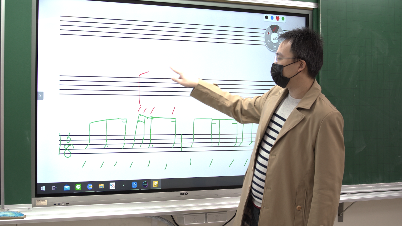 BenQ 大屏(螢幕)內建許多背景模版,其中就有五線譜可選用。「例如音樂班,時常需要用到五線譜的畫面進行教學,如果是將五線譜印刷在黑板上,這個黑板就很難再做其他用途了」張志明校長表示。老師再也不需要自己手繪,或是特別移動到音樂教室。成功國中因為設置有音樂班,對於經常要使用『五線譜』教學的情形特別有感。在導入大屏於教室後,老師便能隨時根據教學內容更換所需的模版或教材。