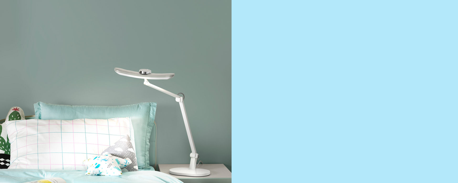 每個孩子的書寫習慣、書桌及座椅的高度不盡相同,更要考慮孩子的身高成長,因此一盞專為孩子設計的好檯燈,一定要可以透過燈頭、燈臂去調節光源照射方向,如此一來便可以依照孩子的使用習慣及實際需求,精準而有效地調整檯燈方向和高低位置,還可以避免光源直射眼睛,以營造最舒適的閱讀和遊戲環境。
