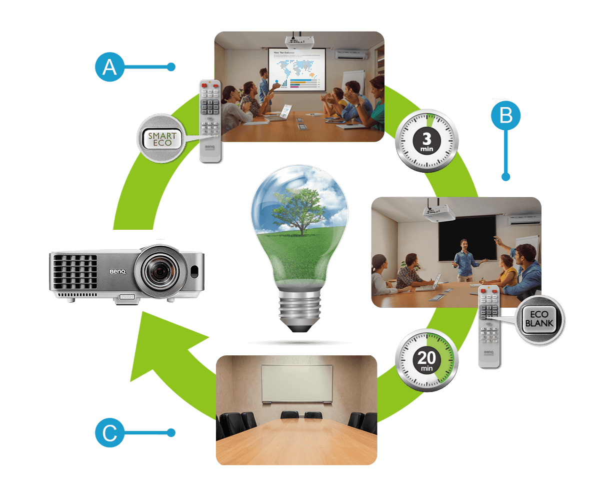 BenQ 省電循環系統能夠減少用電浪費,縮短開會前後的電源開啟等候時間,大幅降低維護成本和總持有成本。