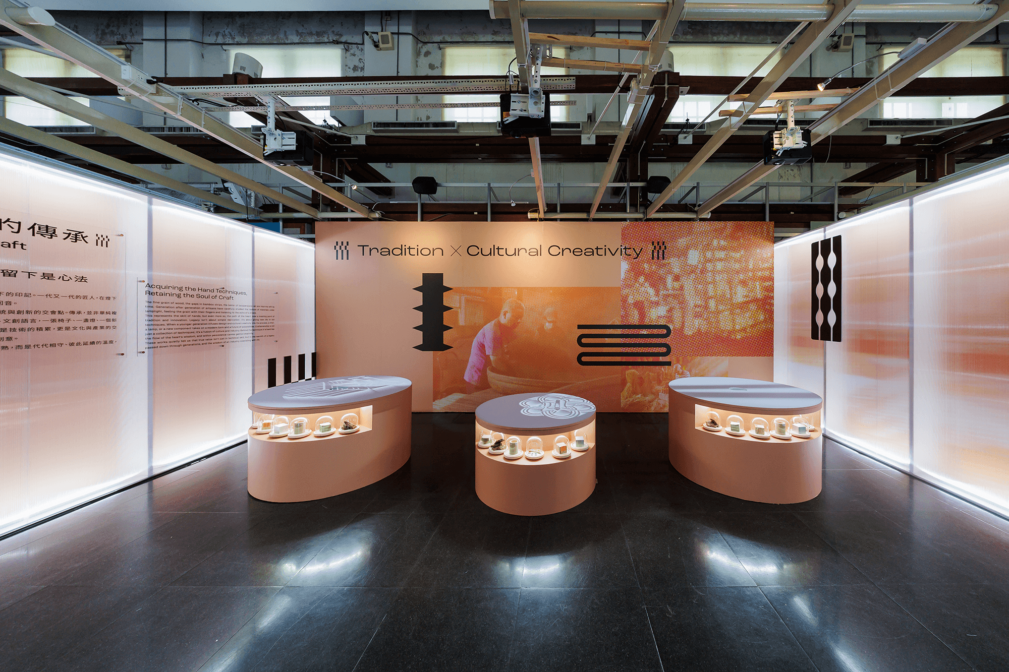 而且總監表示,本次在工藝展區中,有使用「光雕投影」(Projection Mapping) 的技術,透過預先設計的動畫、圖形,投影在物件上,因此讓視覺更加生動,完全看不出拼湊感 。這種對細節的堅持,讓展館在長達 17 天、每日超過 8 小時的高強度運作下,始終維持穩定的卓越表現 。最終不負眾望,在官方問卷調查中榮獲口碑第一名,成為整個設計展最受歡迎、最令觀眾感到感動與驚艷的展館 。