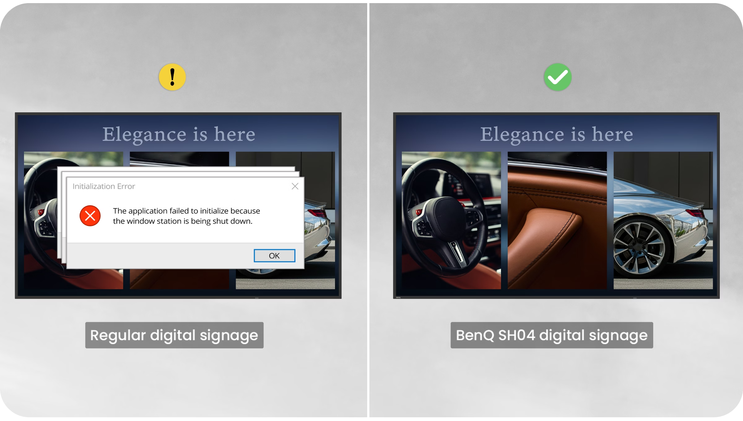 X-Sign 電子看板廣告軟體可避免系統訊息視窗或警示干擾內容播放,確保資訊呈現流暢不中斷,帶來穩定一致的看板體驗。
