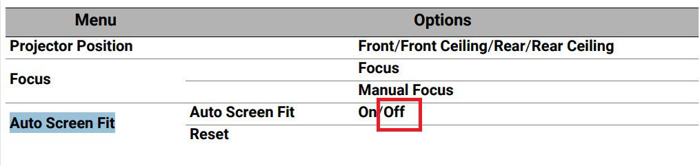 2. 請確定畫面填滿(Screen Fill)不是設定為16:10、4:3或1:1,否則畫面比例會自動調整為Auto,將無法手動變更。