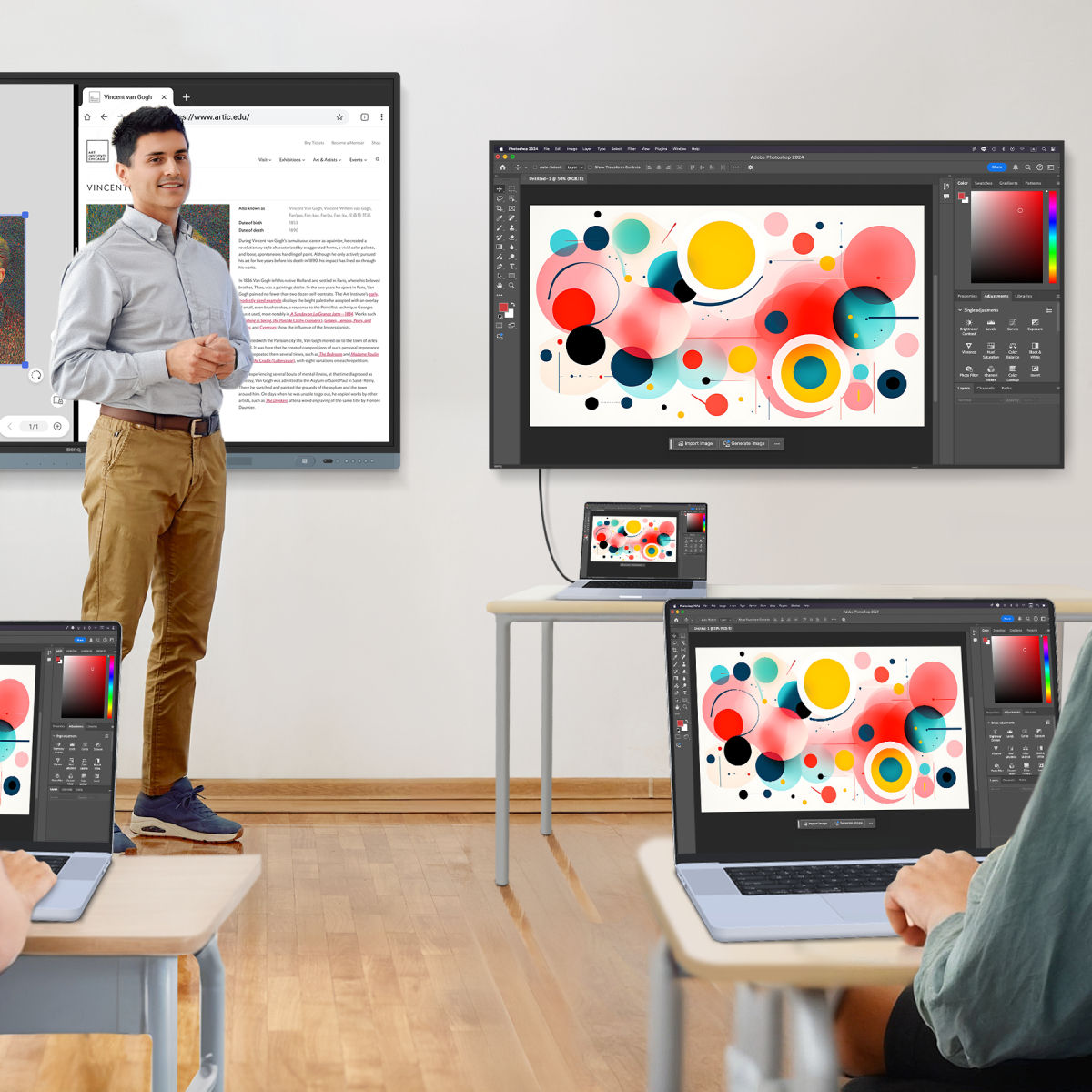 適用於各種學習情境。透過集中式帳戶管理,無論在哪間教室,都能立即載入個人化工作區與雲端檔案,確保教學流暢無礙。