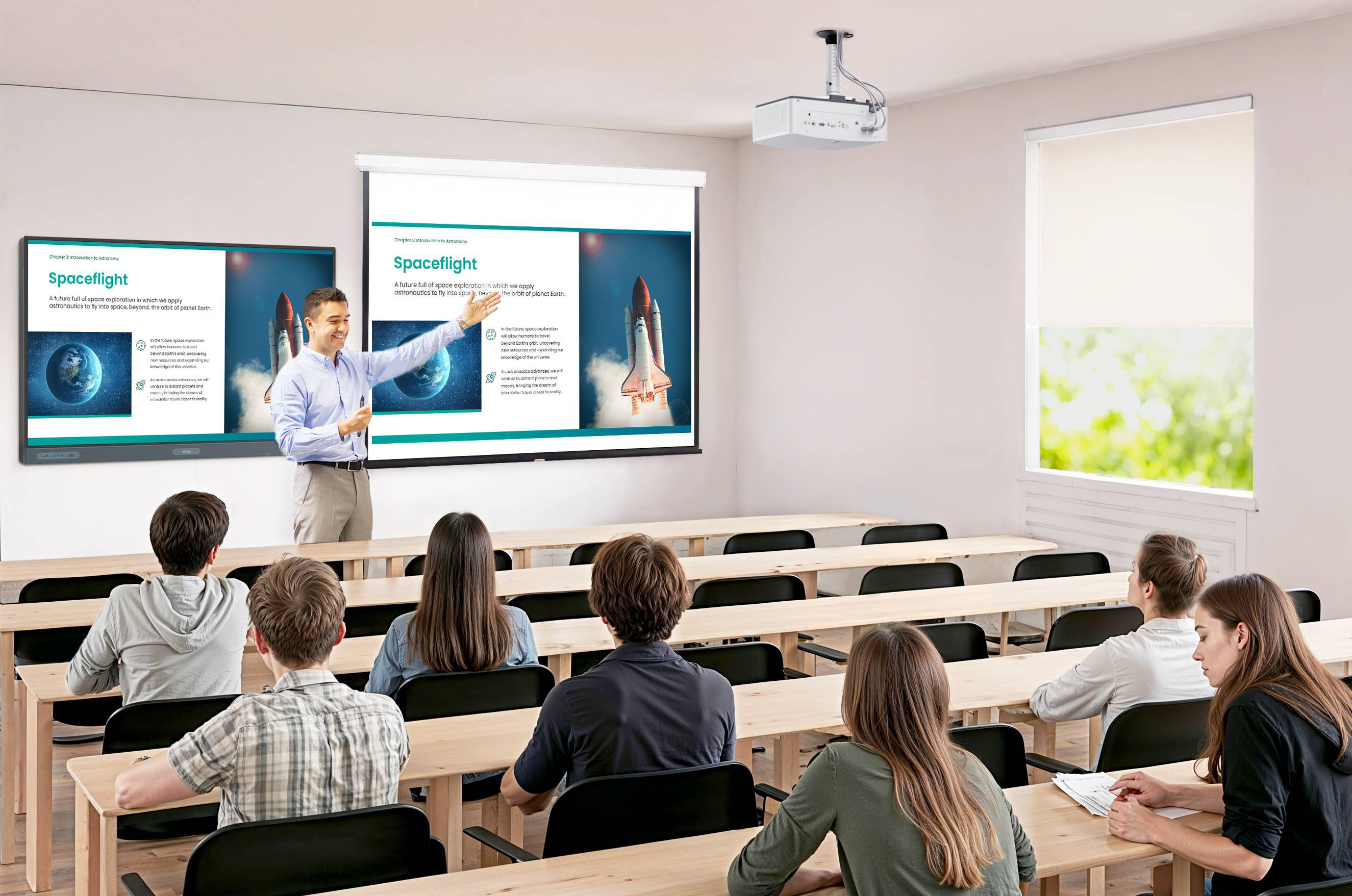 講堂教室是許多學術活動的核心,尤其在需要清楚呈現內容並促進學生參與的課堂中。BenQ 提供的智慧教育解決方案專為此設計,不僅提供高品質的視覺呈現,還能鼓勵學生與教師之間的積極互動,使教學過程更生動且高效。