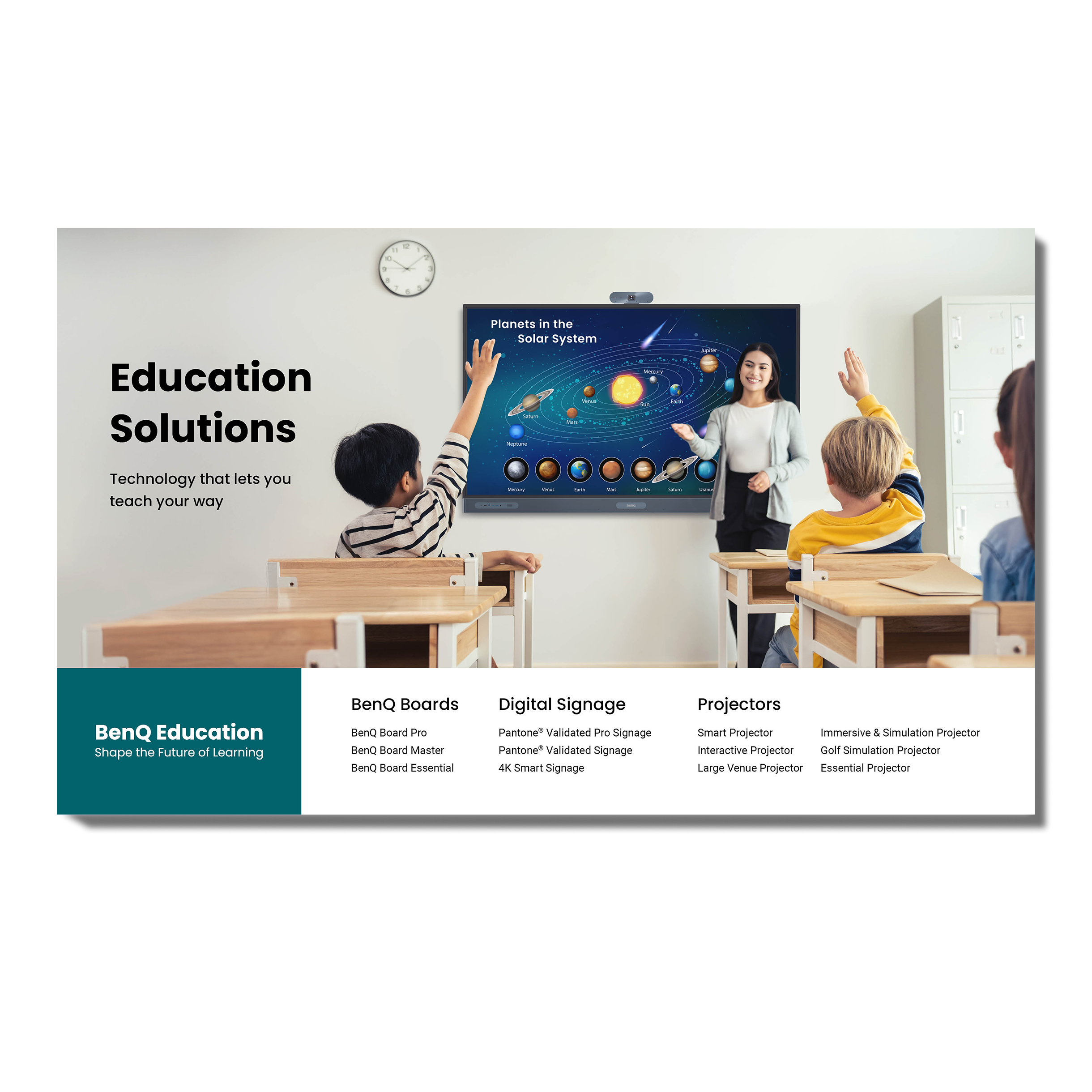 了解 BenQ 教育產品線,涵蓋互動觸控顯示器、數位電子看板、投影機及周邊配件。