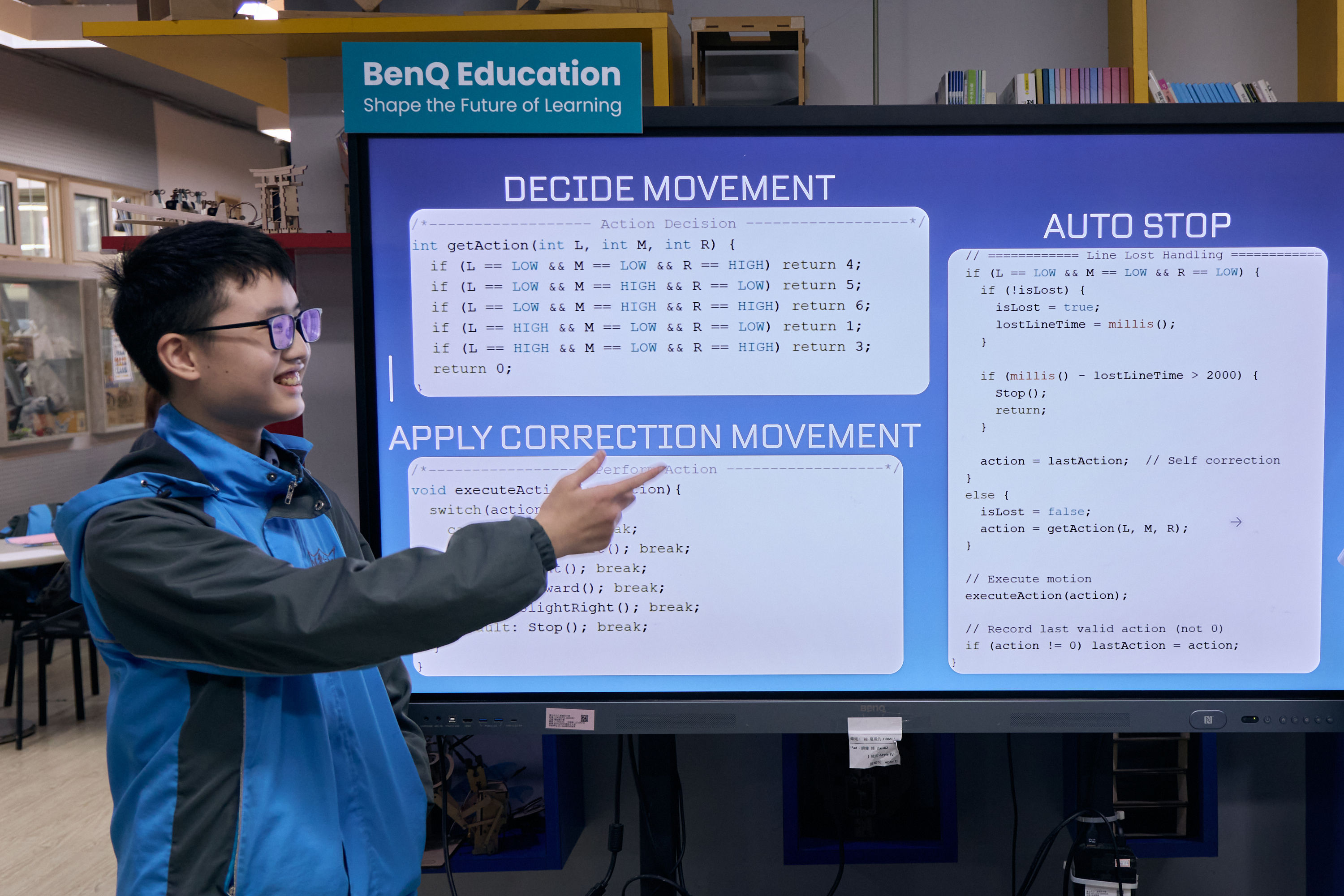 臺北市仁愛國中身為指標性雙語教育與自造教育中心,多年深耕智慧教室與STEAM跨域課程,並持續拓展國際教育連結。仁愛國中重視科技在教學現場的長期運作,一直是科技教育推動的核心學校。自 107學年度導入BenQ互動大屏後,多次汰換仍延續採用BenQ解決方案,逐步建立智慧教室、雙語課程與跨文化教育的完整生態系,使科技成為學生語言表達、跨域探究與全球視野的重要支柱。近年學生在世界青少年發明展、VR跨域盃、PowerTech創作競賽、3R(AR, VR, XR)創作競賽等多領域表現亮眼,展現STEAM教育的累積成果。