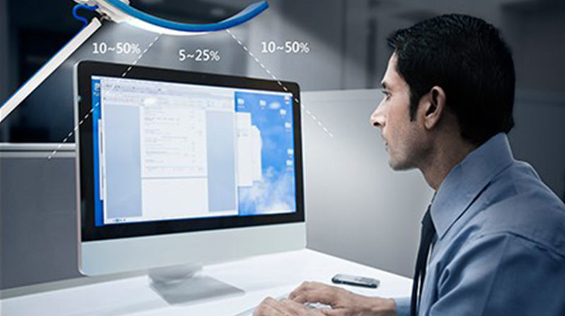 另外,除了休息之外,為眼睛營造一個舒適的環境,也可以減少眼睛疲勞。前面提到,光線不足的時候,眼睛需要更費力地對焦,所以準備一盞檯燈為工作環境提供充足的照度就顯得相當重要。亮度充足之餘,也需要注意視野內的亮暗對比,特別是以螢幕為主要的工作媒介時,如果螢幕比周邊環境還亮的時候,也會容易造成眼睛疲勞。這時候可以適度降低螢幕亮度,或是使用螢幕閱讀專用的檯燈來為周遭環境補光。