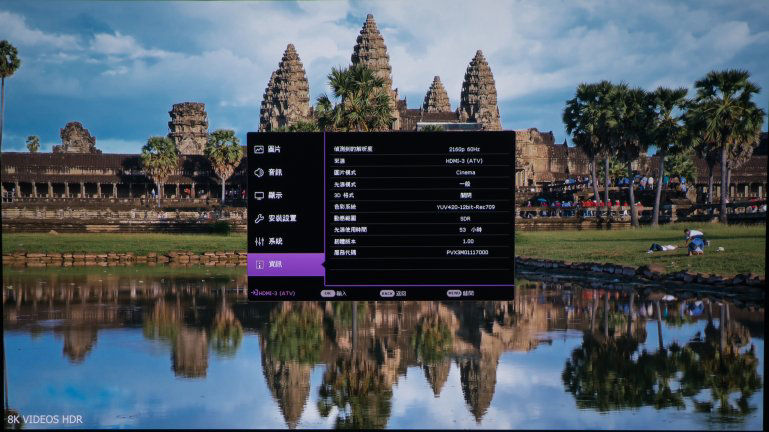 2. 反之當在玩 4K 120Hz HDR 遊戲時,投影機不支援120Hz 的情塊況,畫面會自動調整為 4K 60Hz 或是 1080p 60Hz。