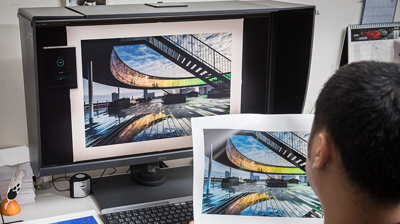 攝影師可以利用顯示器的亮度來增強他們的工作; 但是環境光線所產生的多餘亮度可能會妨礙工作品質。很幸運的,為螢幕特別定製的遮光罩可以為攝影師減少眩光並確保準確的色彩重現。