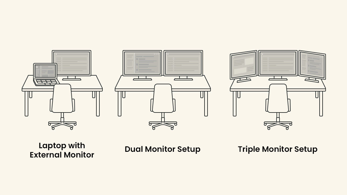 合適的配置隱藏在幕後,讓你的工作不受干擾地展開。無論使用兩台螢幕還是三台螢幕,建立一個降低切換成本的空間才是真正專注的開始。