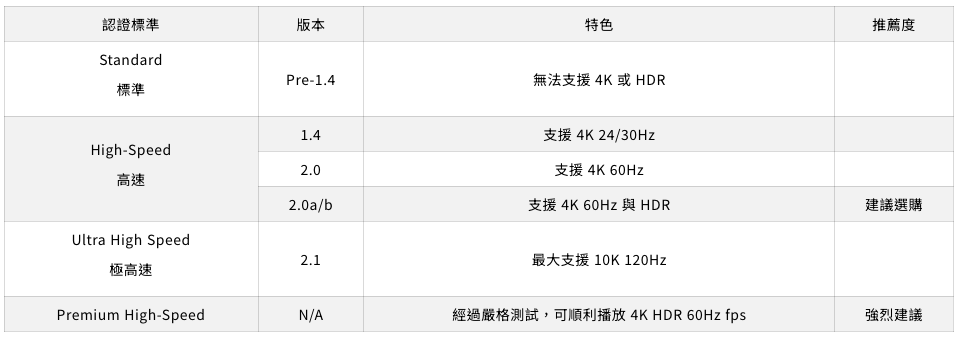 並非所有的HDMI線都可以順利傳輸4K UHD解析度、HDR的影片內容。因此選擇對的線,才可以順利播放4K HDR的影片內容。