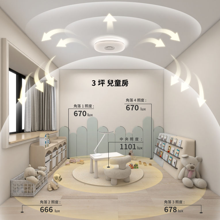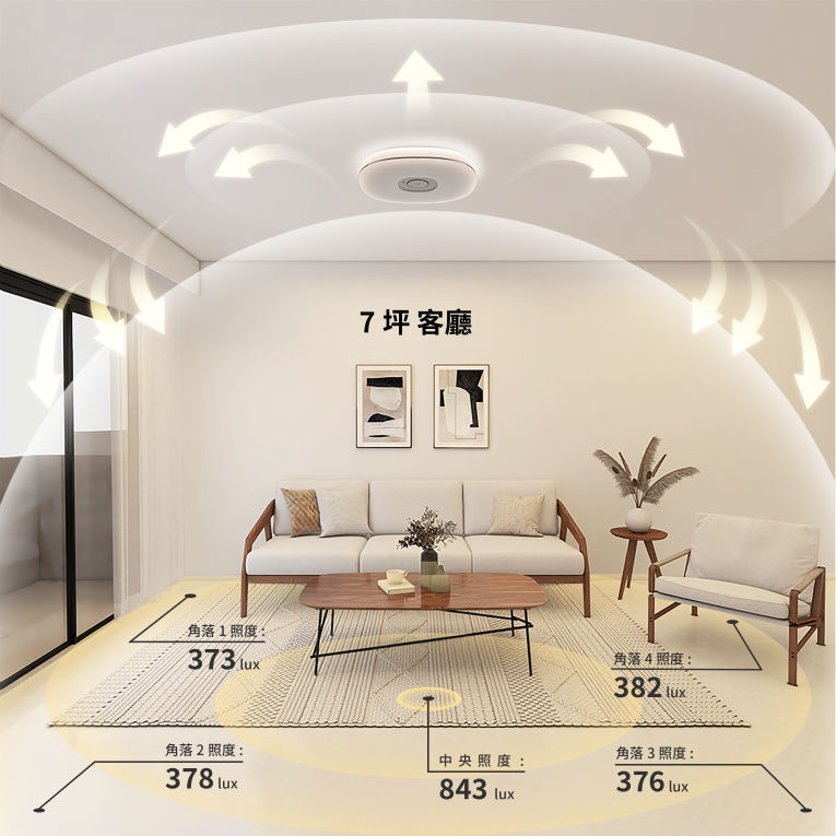 依據室內環境亮度變化,實時調整吸頂燈各層的光線輸出,維持全室亮度充足。