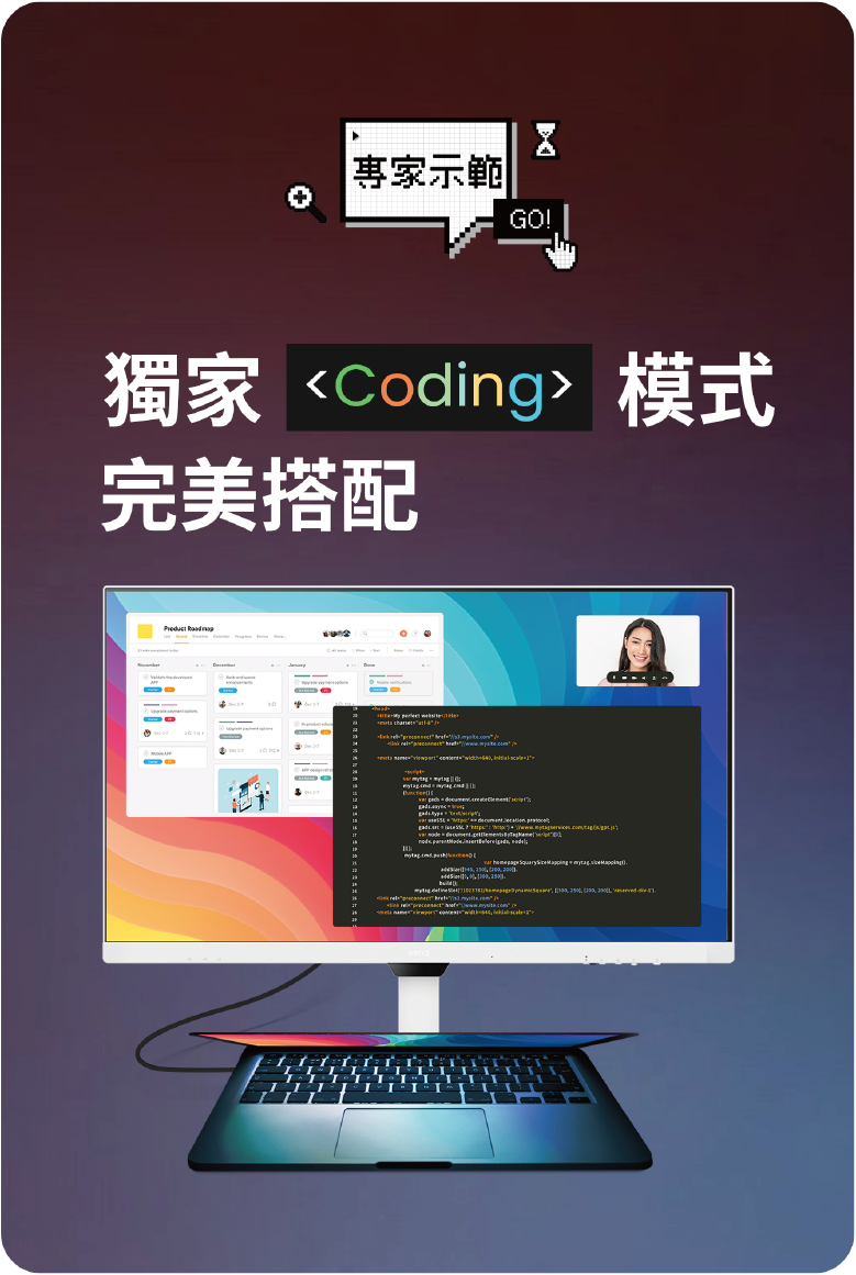 運用菊鏈與Type-C線進行多螢幕串接,提升工作學習效率的同時也保持桌面整潔。螢幕支援90度旋轉來迎合各種多螢幕工作情境。