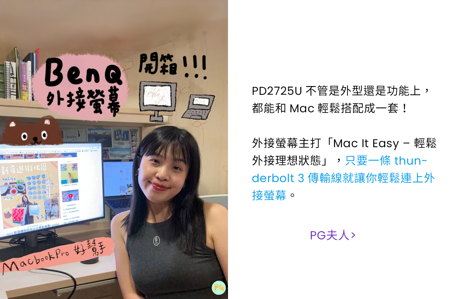 讓你一條線就能夠進行影像、音檔與資料傳輸,同時為你的電腦提供 65W 的充電。簡潔的設計讓設計師的桌面永遠保持乾淨。