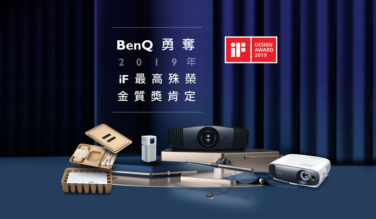 BenQ 2019年以「投影機紙塑包裝」抱回iF金質獎外,尚有W1700投影機、W5700投影機、GV1投影機、ScreenBar螢幕智能掛燈等四項產品獲得iF設計獎,說明如下: