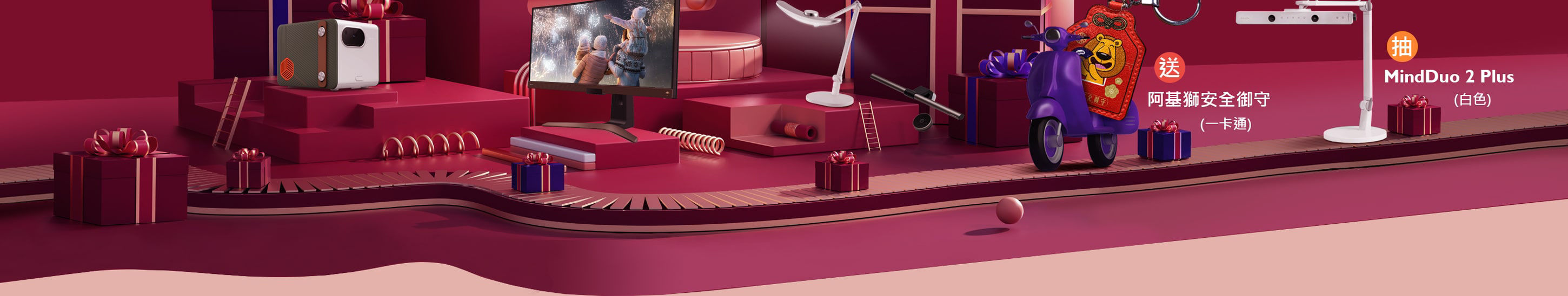 牛去虎來迎新歲,感謝會員去年的支持,於 2022/1/1~1/28 活動期間,會員在官網下單購買全系列主機產品,送阿基獅安全御守 (一卡通) 保你安心出行,還可搭配不同產品在活動期間的各項好禮 !! 更可抽 BenQ 親子共讀檯燈新品 MindDuo 2 Plus (白色款)。