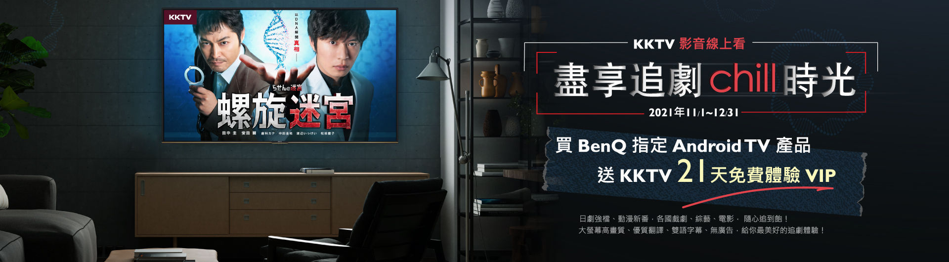 參與機種 BenQ 4K HDR 色準導演機 W2700i | 活動贈品 KKTV 21天免費VIP體驗 |