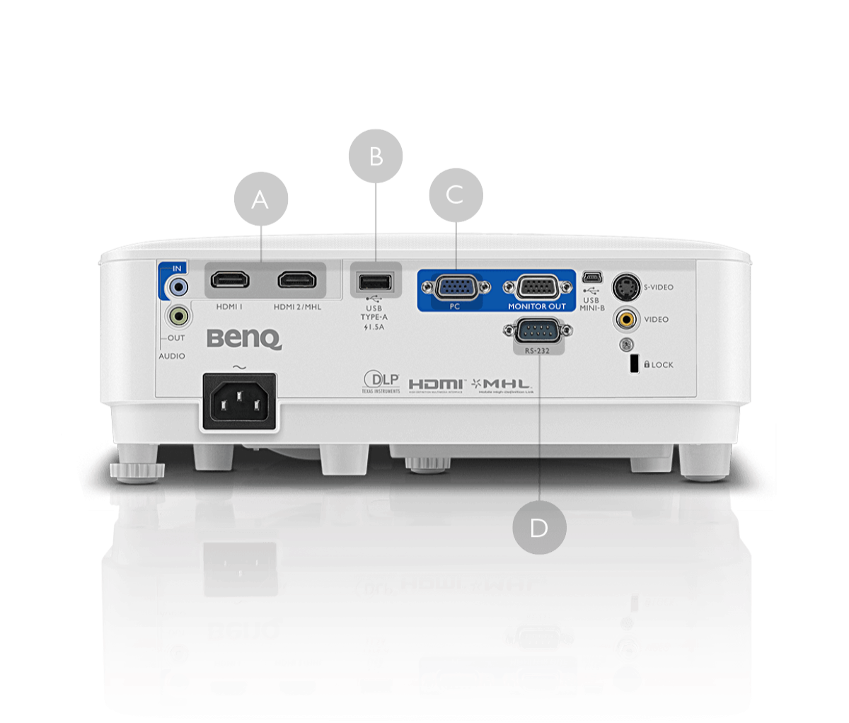 適用於坊間常見的 Kensington 防盜鎖,當投影機必須擺放在桌上時,可以透過防盜鎖固定投影機位置。
