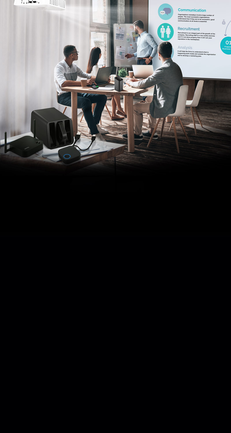 搭配使用BenQ 無線顯示接收器Qcast Mirror QP20,接上 HDMI 連接埠,如投影機、大型顯示器、商用顯示器等等,照畫面指示設定連線,智慧行動裝置 (Android、iOS),筆記型電腦 (Windows、MacOS),立即可以無線投影。