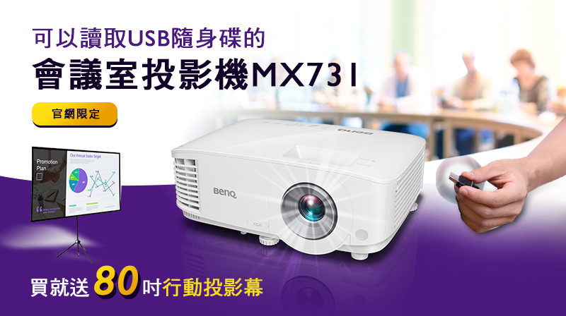 具備的 4000 高流明亮度燈泡,即使在 40人左右的中型會議室,MX731 可提供高畫質、高亮度、高水準的會議,再複雜的簡報圖表,依然從容就緒。