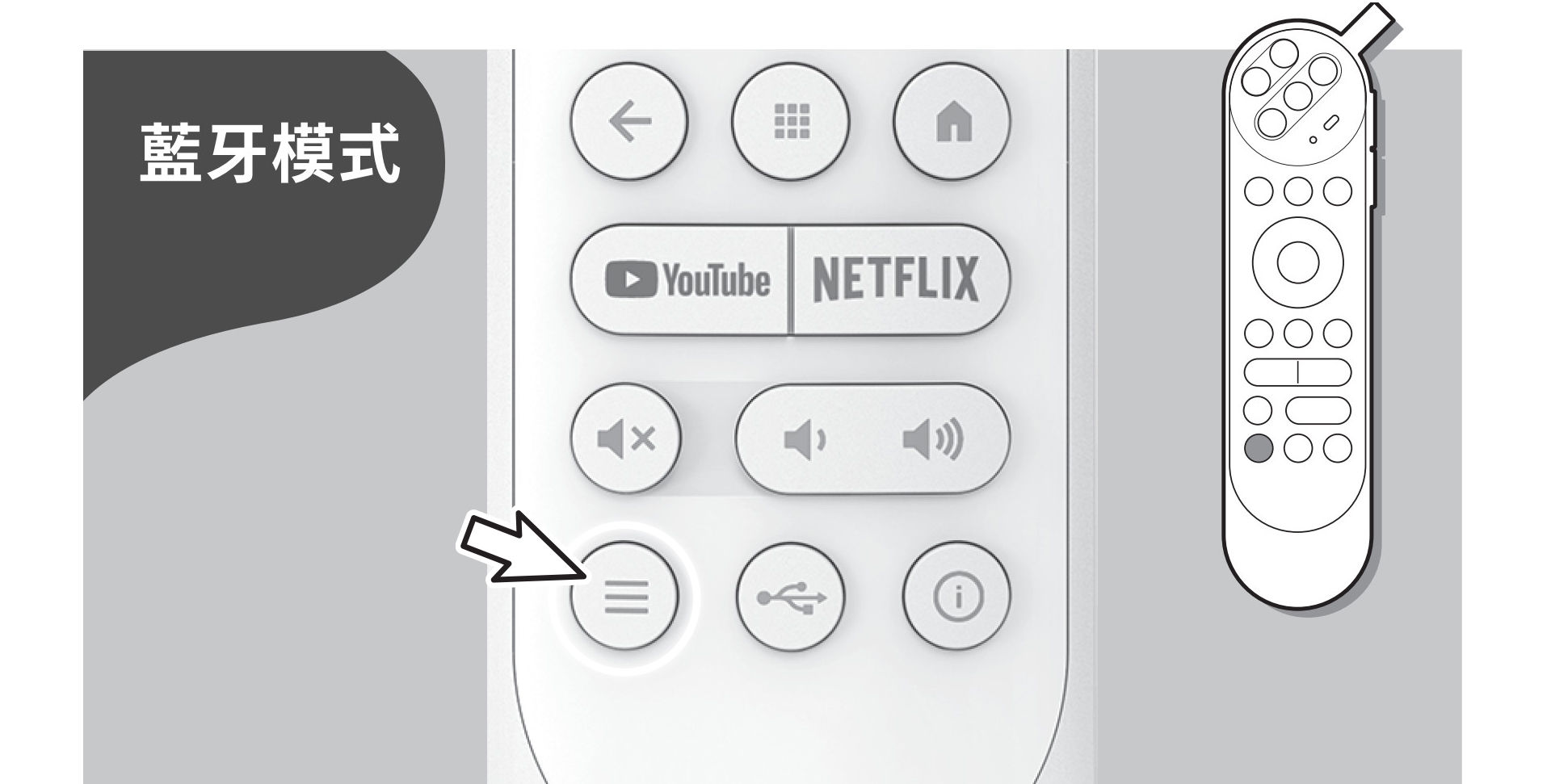 • 在藍牙配對畫面或功能選單下的遙控器與配件選單中,長按【目錄】鍵 3 秒可啟動藍牙配對連接。