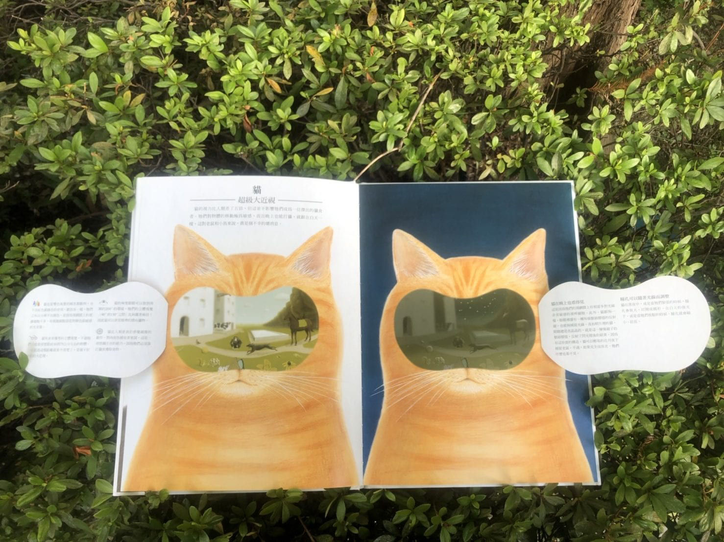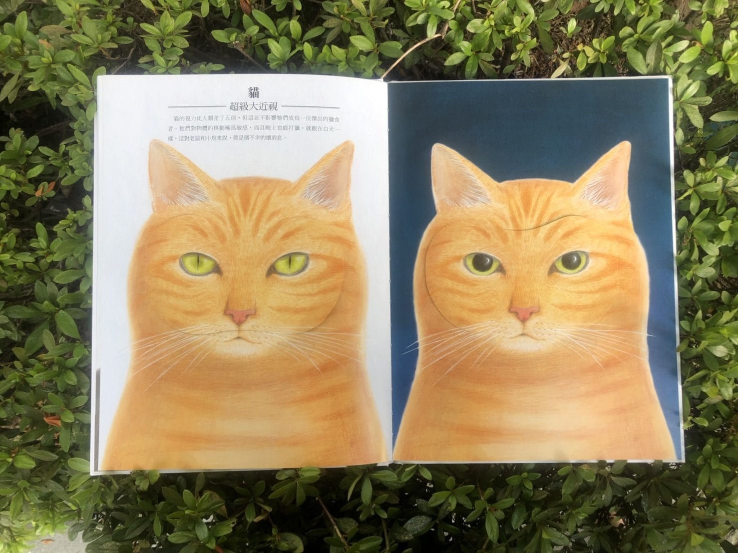 「狗看得見顏色嗎?」、「貓能在黑夜中打獵?」、「昆蟲如何辨認花朵?」,書中充滿這些簡單但趣味橫生的問題。在孩子開始學習之前,他所能接觸到的往往只有自己親身的經歷,但也因此利用顏色、黑夜、花朵這些日常生活中的元素,透過與自身的經驗作對比,就可以激發出孩子的好奇心,去瞭解在不同生物眼中的世界,會跟他的經驗有何不同,進而誘發孩子進行知識性的學習。