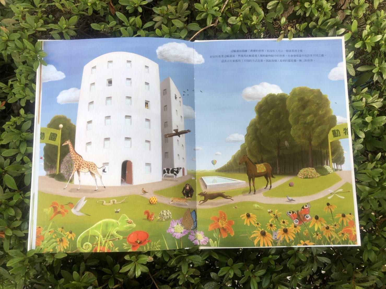 「這幅畫面描繪了真實的世界,但沒有人可以一眼就看清全貌。」此繪本所能提供的,不僅僅是科普知識的學習。更重要的是,透過具體地呈現出不同動物眼中的世界,繪本不斷強調的其實更是同理心的概念。我們往往因為不瞭解彼此的想法、成長的背景、甚至是對方所在意的事物,進而產生隔閡、排斥彼此,如果在相同物種間都可能發生,那不同物種就可能更加嚴重。透過這本繪本,可以讓孩子學習到「大家都用了不同的方式在看這個世界,因此每個人看到的都是獨一無二的。」!