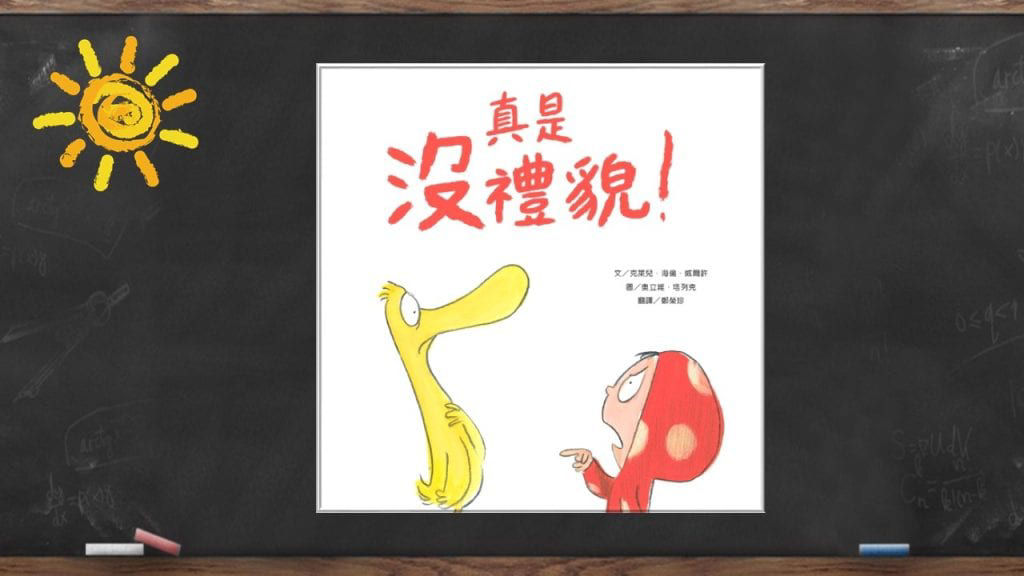 你的孩子也常常沒禮貌嗎?出門在外常常只顧自己,給別人帶來一連串的麻煩……。這本今年甫出版的童書,透過兩個人物點點、鴨鴨,透過他們的一場下午茶約會,簡單的故事其實呈現出生活中重要的道理。
