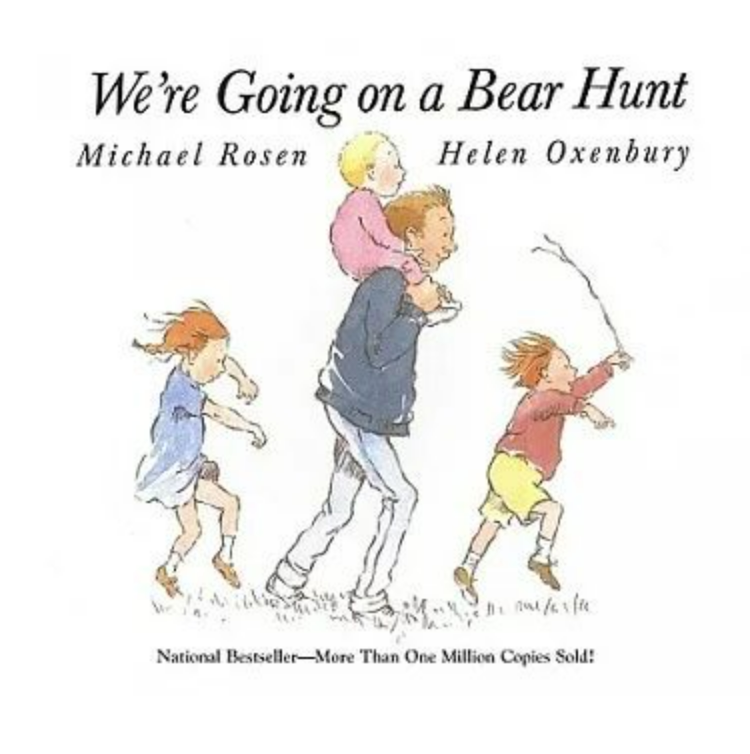 作者邁克.羅森是一名詩人兼劇作家,「We’re Going on a Bear Hunt」是一首傳統的野營歌,邁克.羅森把這首傳統歌曲進一步擴寫、延伸,成為一個爸爸帶著四個孩子及牧羊犬出門捉狗雄的英文故事書,劇情跌宕起伏,文字朗誦起來也相當有節奏,很適合孩子閱讀。