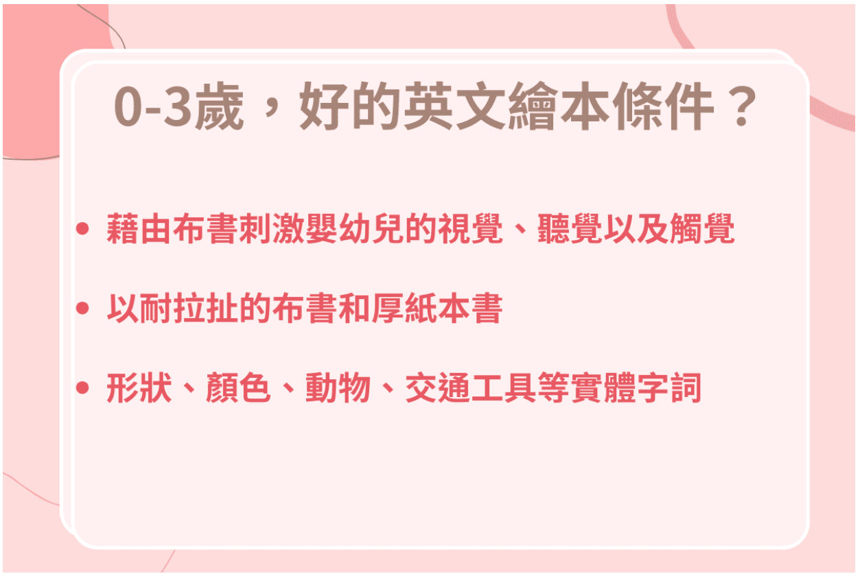對0-3歲的寶貝們來說,好的英文繪本推薦要素: