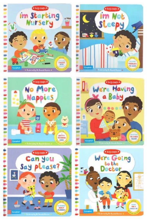 這本適合三歲到五歲孩子的英文繪本,內容從小孩開始戒尿布(No More Nappies), 去幼兒園(I’m Starting Nursery)到生活中的各種細節:自行穿衣(We can Get Dressed),看醫生(We’re Going to the Doctor),看牙醫(We’re Going to the Dentist)。而其中對爸爸媽媽來說最棘手的便是家裡的寶貝不愛睡覺(I’m Not Sleepy),甚至是家裡要有新成員(We’re Going to Have a Baby),如何調適小小孩的心態。這套書可以說是英文的會話入門以及新手爸媽養成必看之可愛繪本!