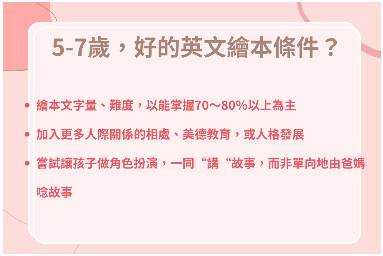 對5-7歲的寶貝們來說,好的英文繪本推薦要素: